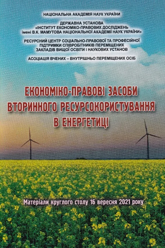 Економіко-правові засоби вторинного ресурсокористування в енергетиці : матеріали круглого столу (Київ, 16 верес. 2021 р.)