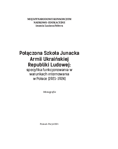 Połączona szkoła junacka Armii Ukraińskiej Republiki Ludowej: specyfika funkcjonowania w warunkach internowania w Polsce (1921—1924)