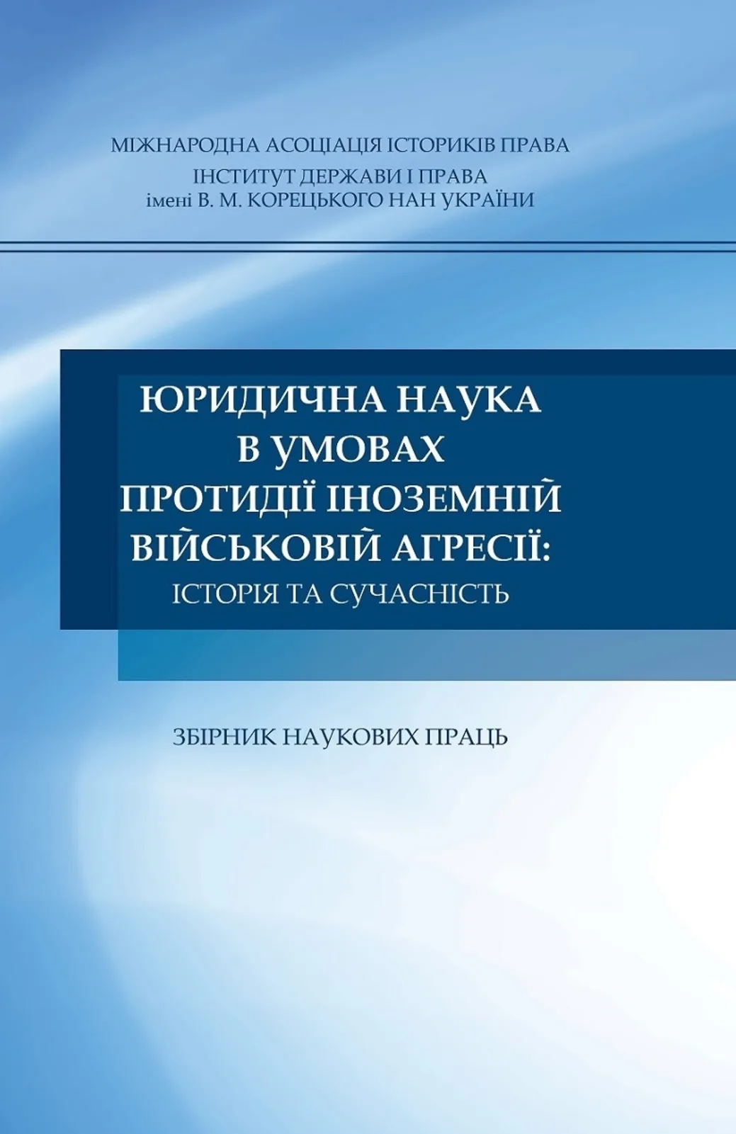 Summary: The collection of scientific papers is devoted to various aspects of the development of legal science in the context of foreign aggression: problems of organizing scientific research, the war pages of biographies of some prominent Ukrainian scientists, the place of legal science in countering aggression on the ideological front, combating falsification of history, etc. It is based on the articles prepared as a result of the International Scientific Conference «Legal Science in the Context of Countering Foreign Military Aggression: History and Modernity» (Kyiv, June 30, 2023), as well as in the course of routine research of the V.M. Koretsky Institute of State and Law of the National Academy of Sciences of Ukraine.