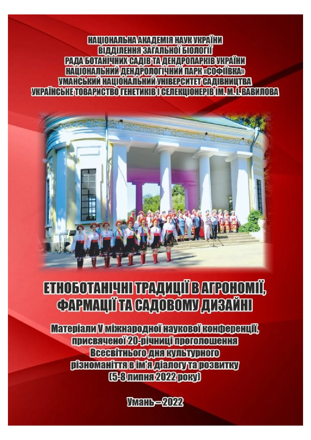 Етноботанічні традиції в агрономії, фармації та садовому дизайні : матеріали V Міжнар. наук. конф., присвяченої 20-й річниці проголошення Всесвітнього дня культурного різноманіття в ім’я діалогу та розвитку (Умань, 5—8 лип. 2022 р.)